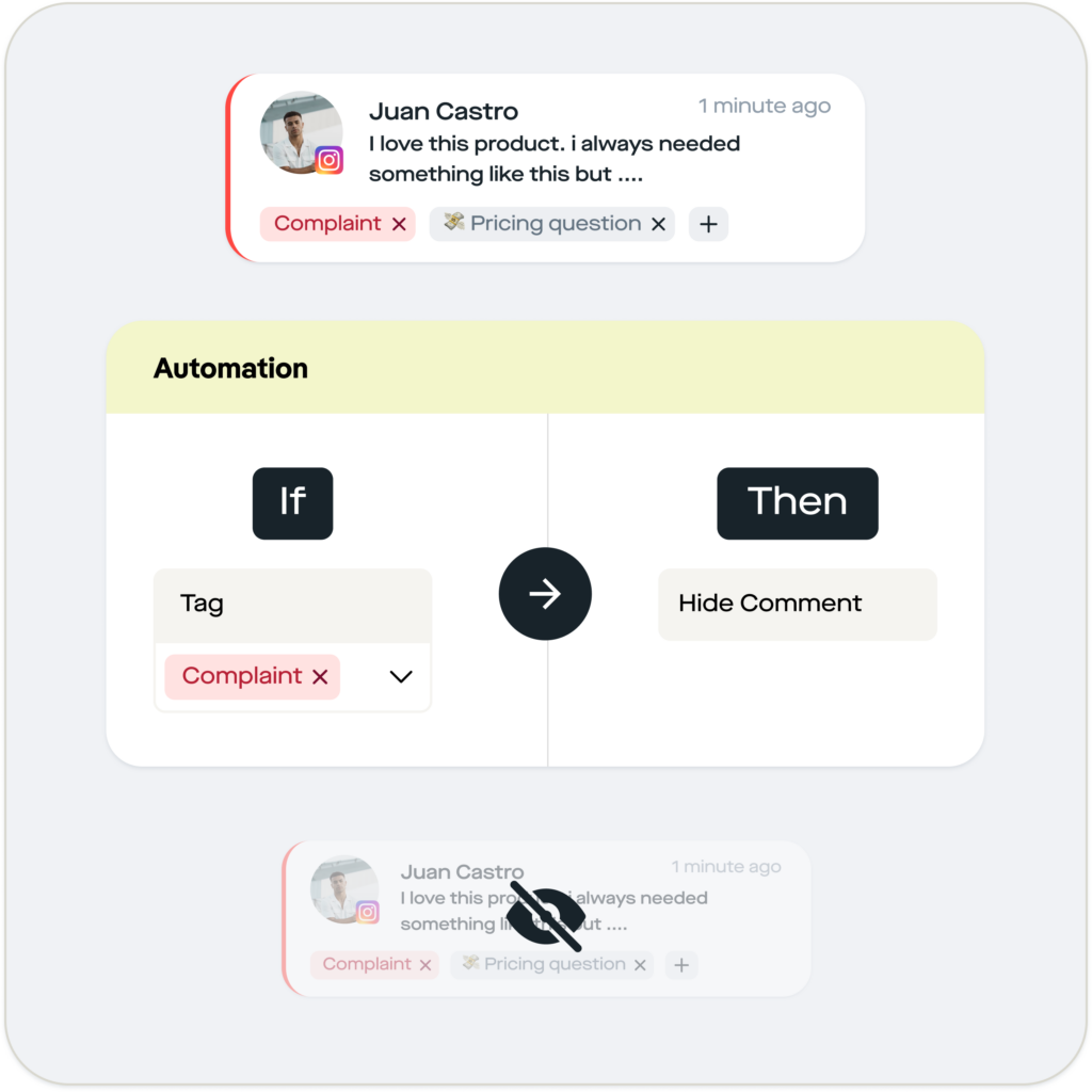 With replient.ai, you can automatically hide inappropriate or negative comments before they can harm your brand. Our powerful automation system ensures that unwanted comments remain unseen.